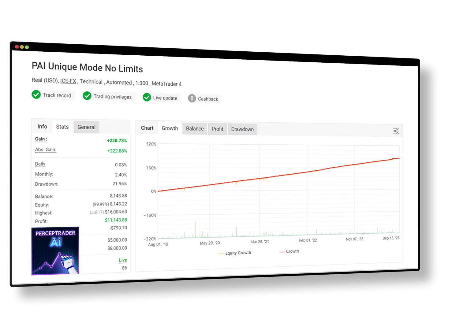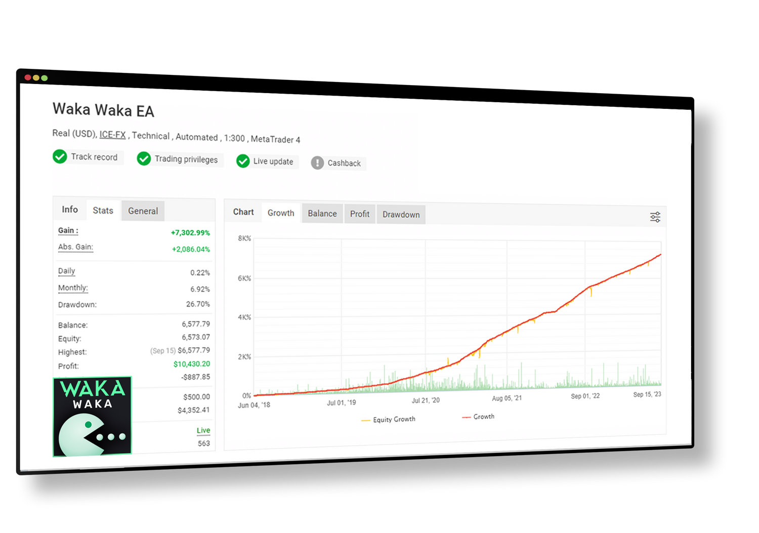 Perceptrader AI shares the proven trading stategy and logic with the "record-breaking" Expert Advisor, Waka Waka