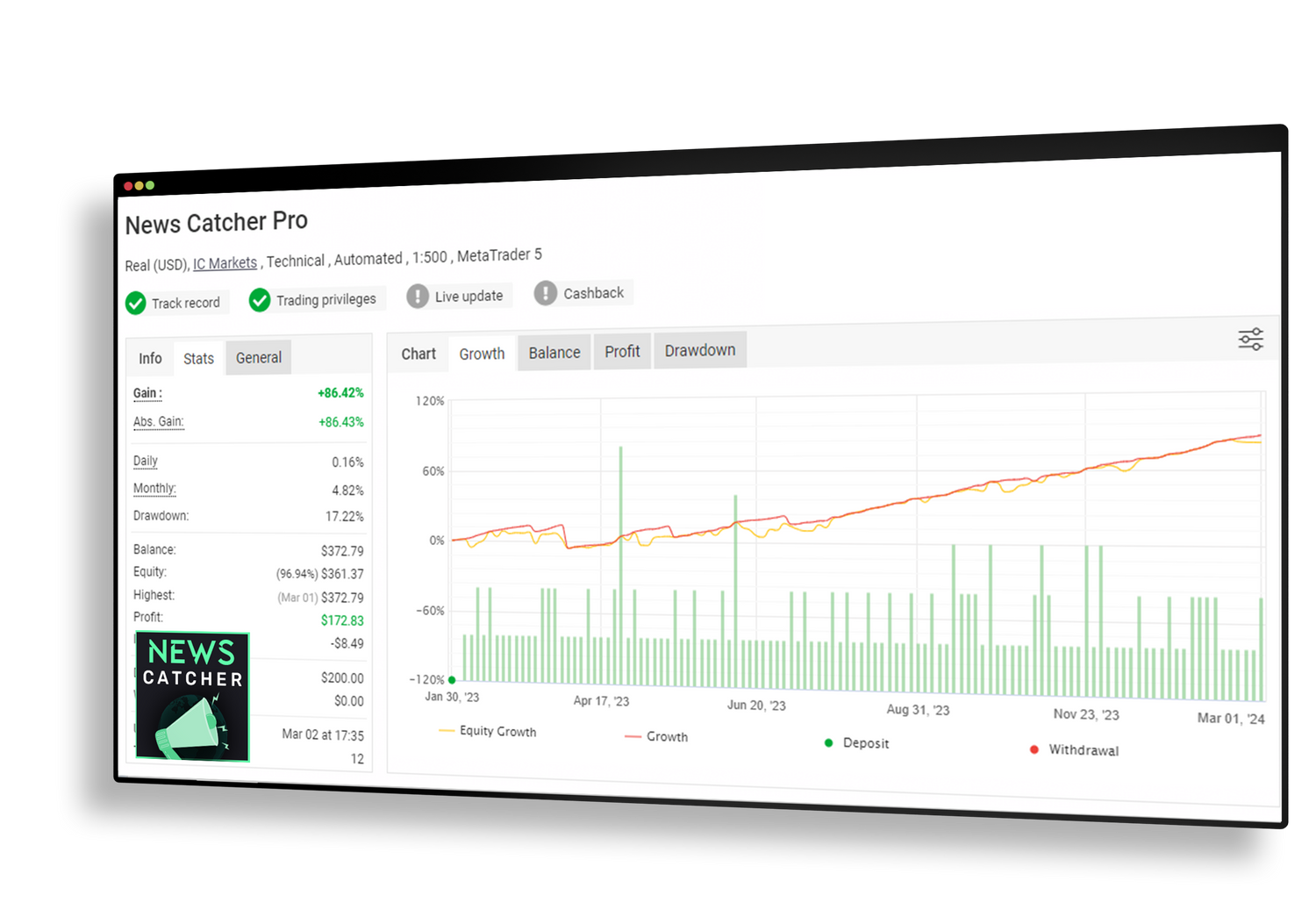 News Catcher Pro is a mean-reversion strategy that uses intraday seasonal volatility patterns caused by high-impact news events