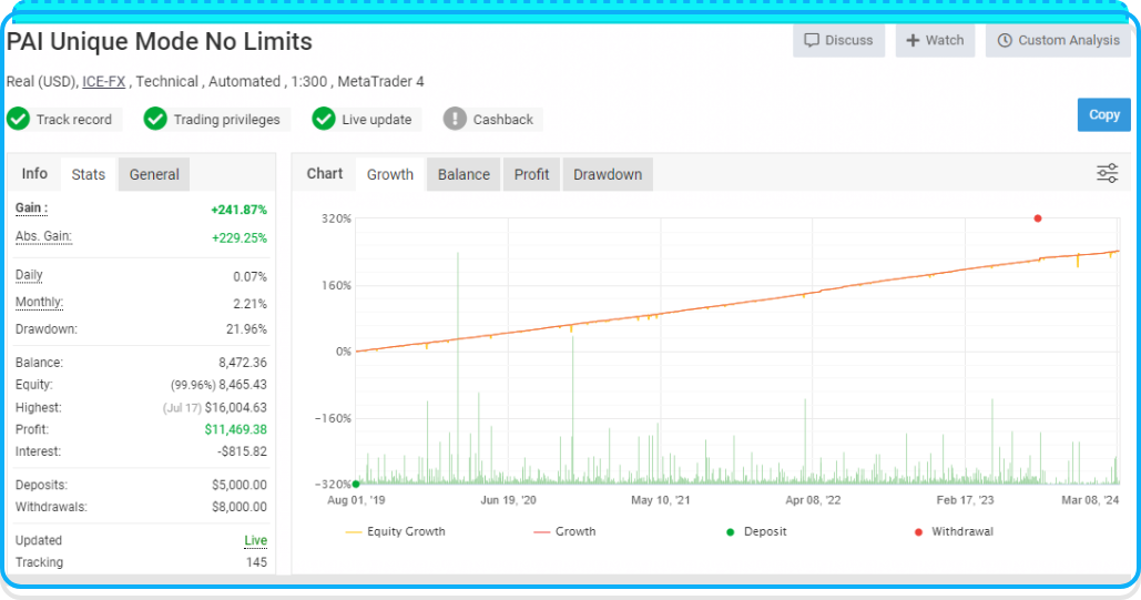 Has a (double) verified MyFxBook track record of +4 years on live accounts